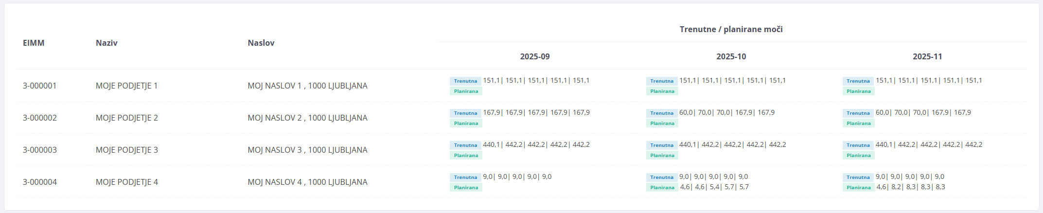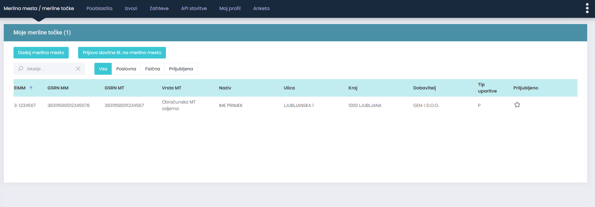 Seznam vseh vaših merilnih mest.
