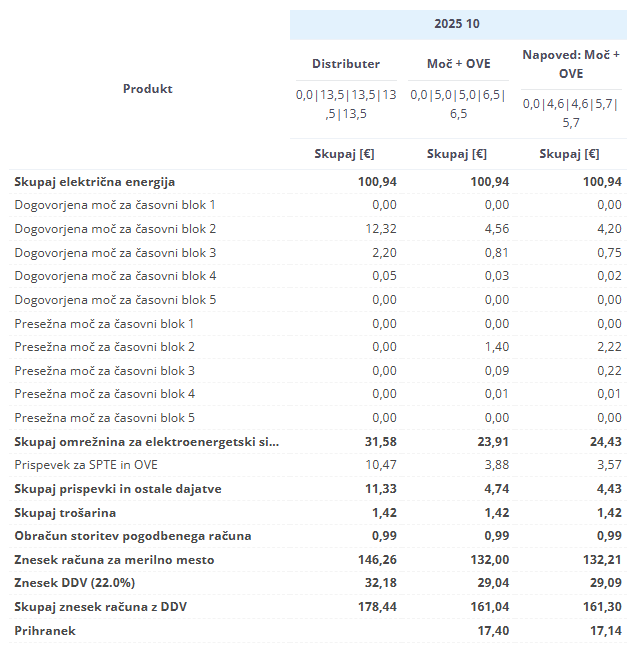 (brez podatkov tekočega obračunskega meseca). Prispevek za OVE se ne upošteva.