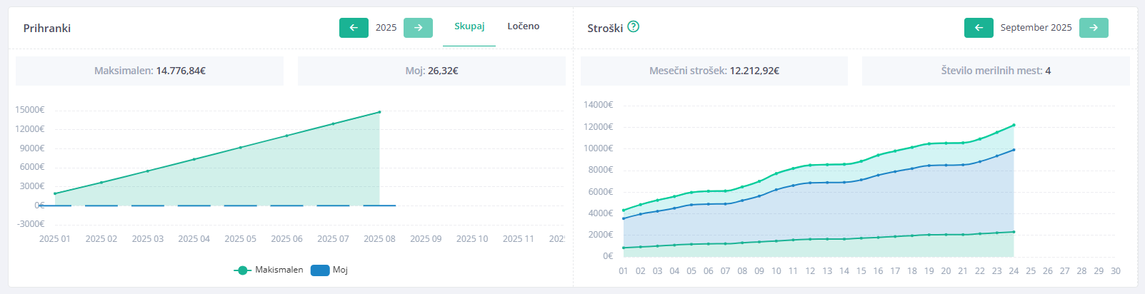 Odkrijte moč nadzora nad svojo porabo! Na nadzorni plošči enostavno spremljate trenutno mesečno porabo v EUR in takoj vidite, koliko lahko prihranite z optimizacijo dogovorjene obračunske moči. Pregledno, intuitivno in pripravljeno za hitre odločitve